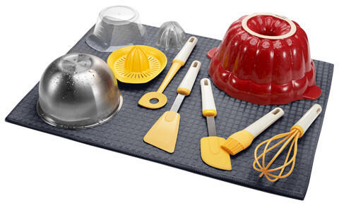 Kiválóan alkalmas nagyobb mennyiségű edény szárítására,   hatékony nedvszívó betétje megbízhatóan felfogja a lecsorgó vizet, és puha textil felülete megvédi az edényt a sérüléstől. A  textilcsepegtető használat után könnyen feltekerhető vagy összehajtható.   30 °C-on mossa, hagyja megszáradni, ne tegye szárítógépbe. 3 év garancia.