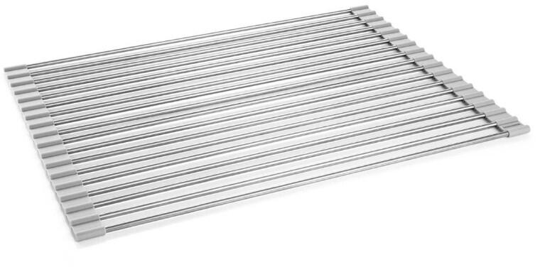 Kiválóan alkalmas edények szárítására és a nedvesség közvetlenül a mosogatóba történő lecsöpögtetésére. Max. 40 cm-es belső térrel rendelkező kerek és szögletes mosogatókhoz alkalmas. Rugalmas, csúszásmentes csatlakozói révén a csepegtető egyszerűen feltekerhető, így kis helyen is elfér. Első osztályú rozsdamentes acélból és szilikonból készült. 3 év garancia.